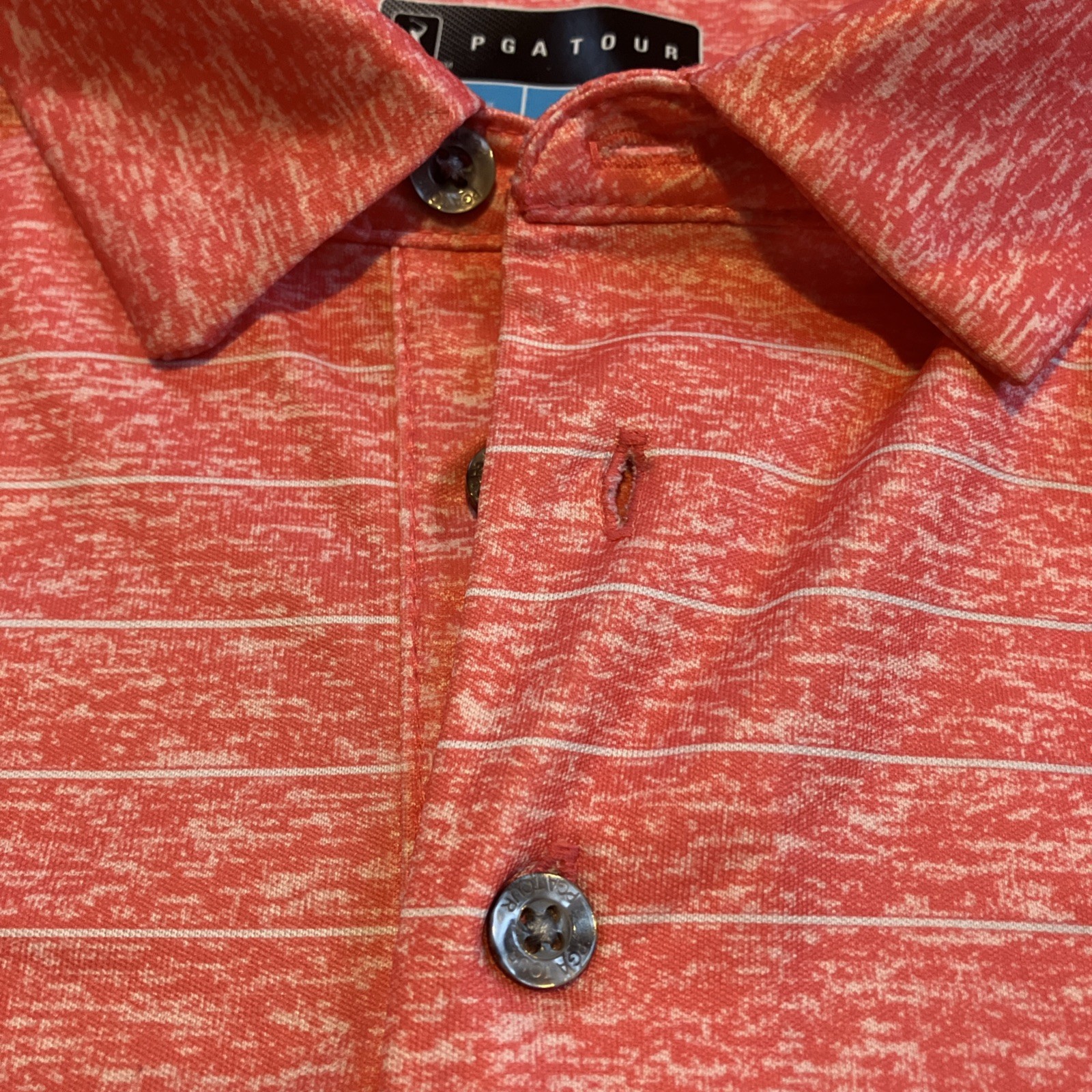 как выглядит PGA Tour Golf Mens Cool Polo Shirt Orange Striped Short Sleeve Size M NWOT фото