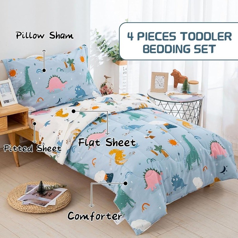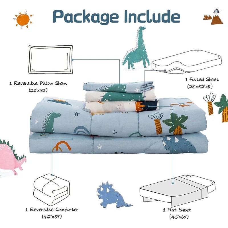 Dinosaur Car Kids Twin Bedding Set Cozy Comforter Sheets Pillowcase 4 Pieces New