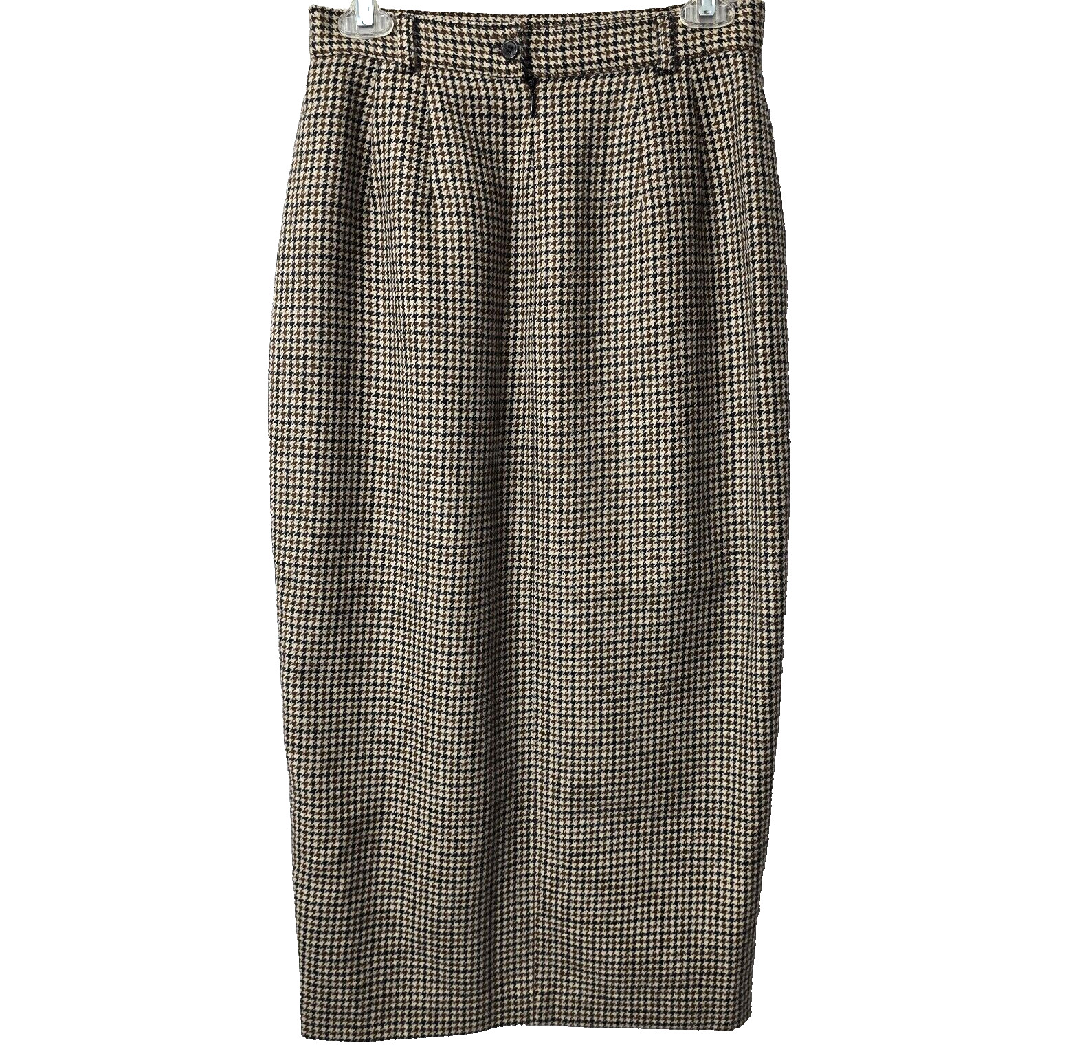 Vintage 90s Houndstooth Pencil Skirt 8 Worsted Wool Lined Brown Y2K Office Work