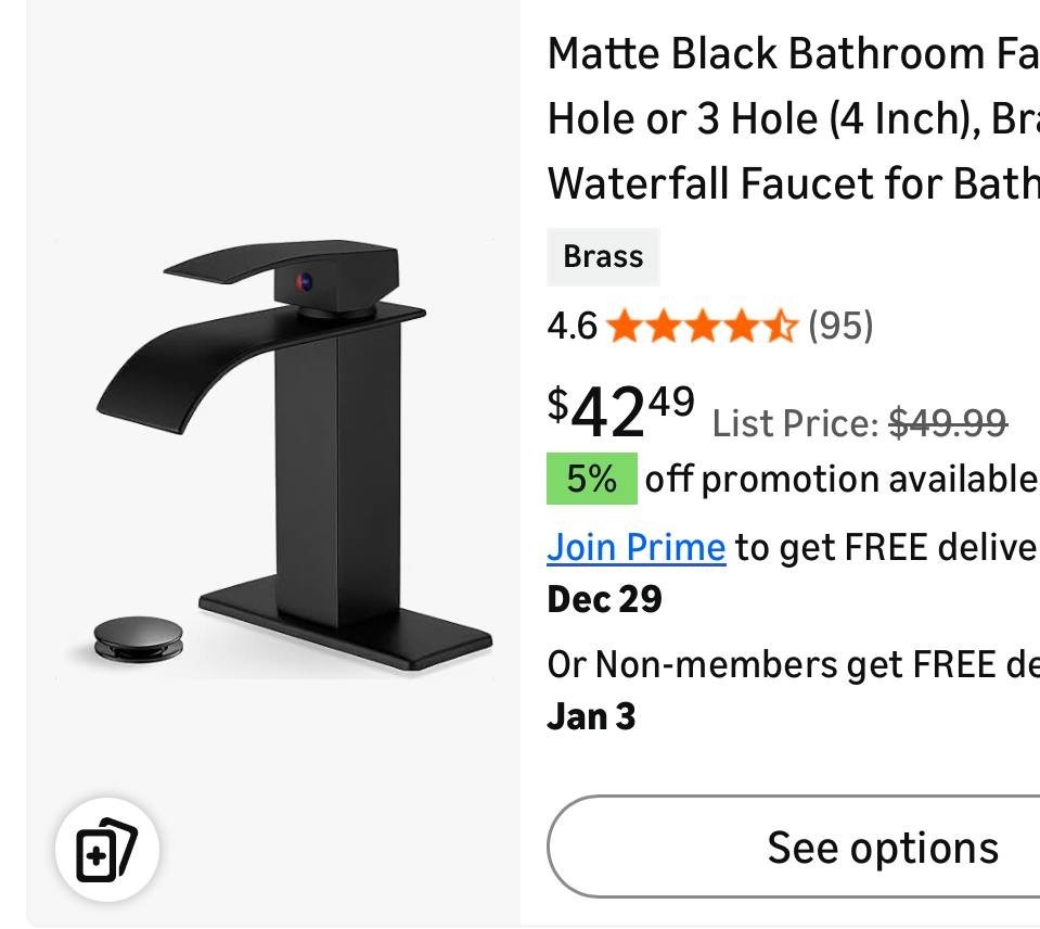 как выглядит Matte Black Bathroom Faucet 1 Hole or 3 Hole 4 Inch , Brass Waterfall Faucet фото