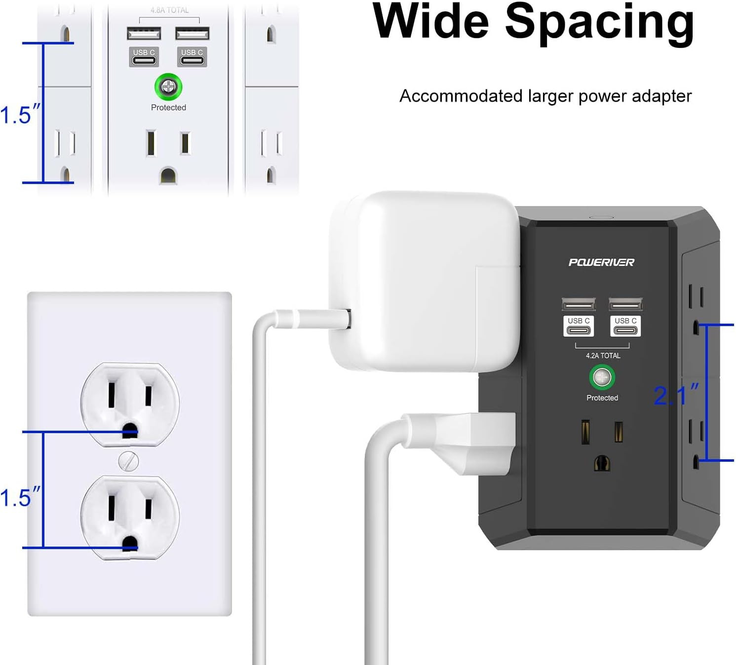 как выглядит Multi Outlet Extender Surge Protector - Multi Plug Wall Outlet with 5 AC Outlet фото