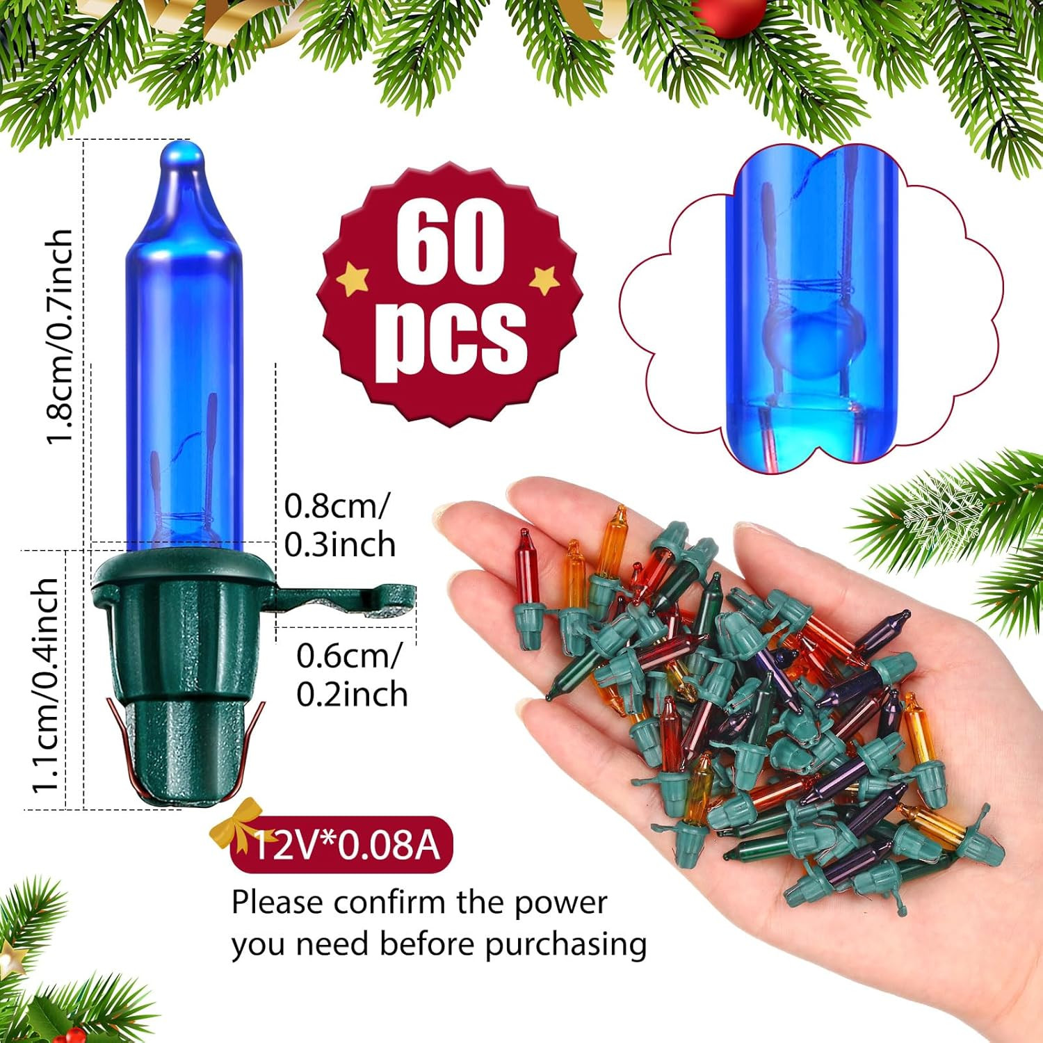 Included Components: 60 Counts Christmas mini replacement bulbs