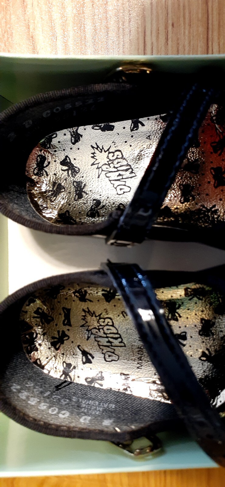 как выглядит Vintage/New BABY DEER Patent Leather Infant Dress Shoes Size Black Gold Bow фото