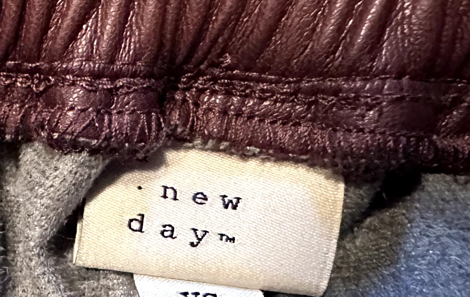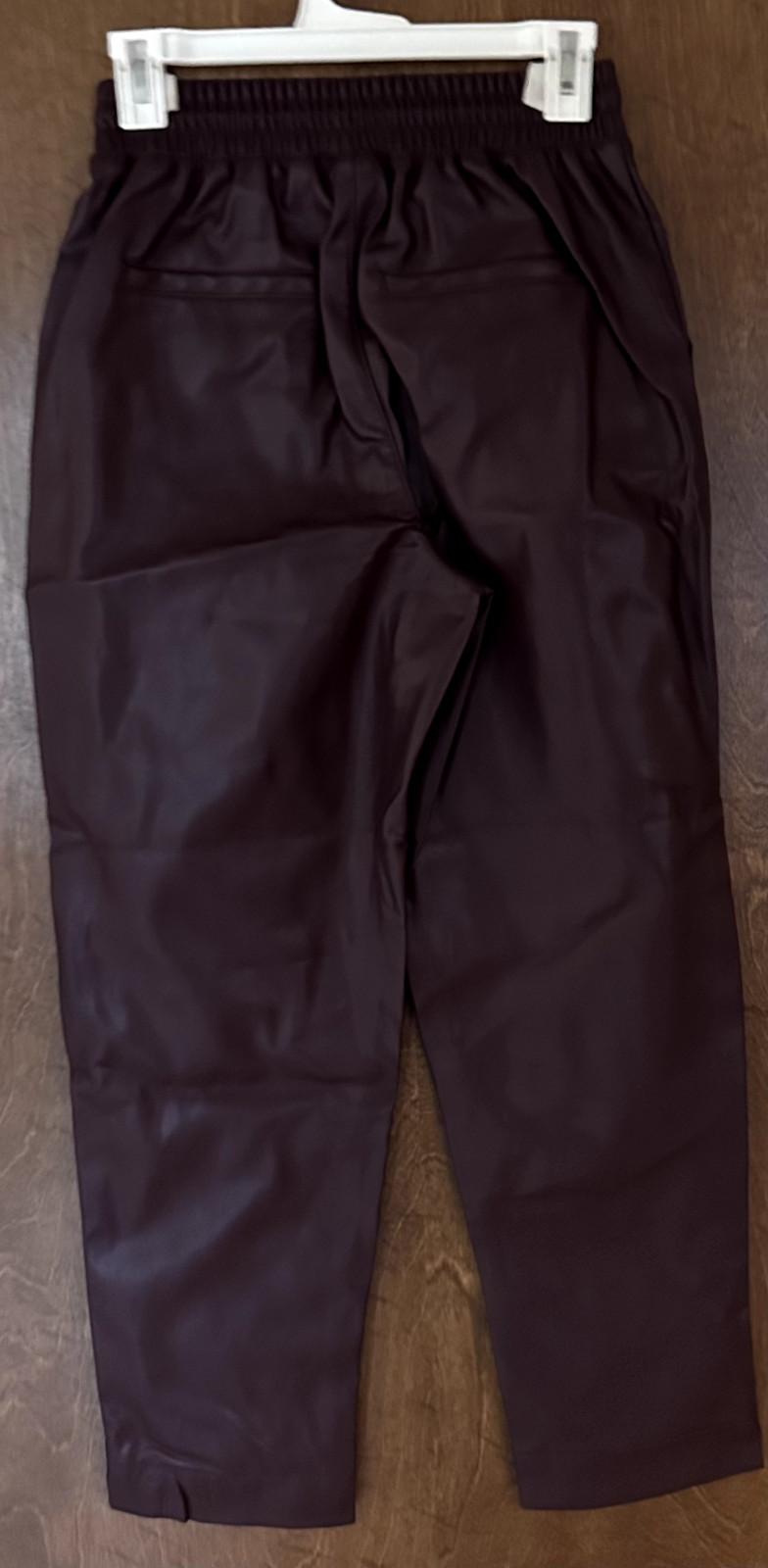 как выглядит Womens High-Rise Burgandy Faux Leather Tapered Ankle Pull-On Pants - A New Day фото