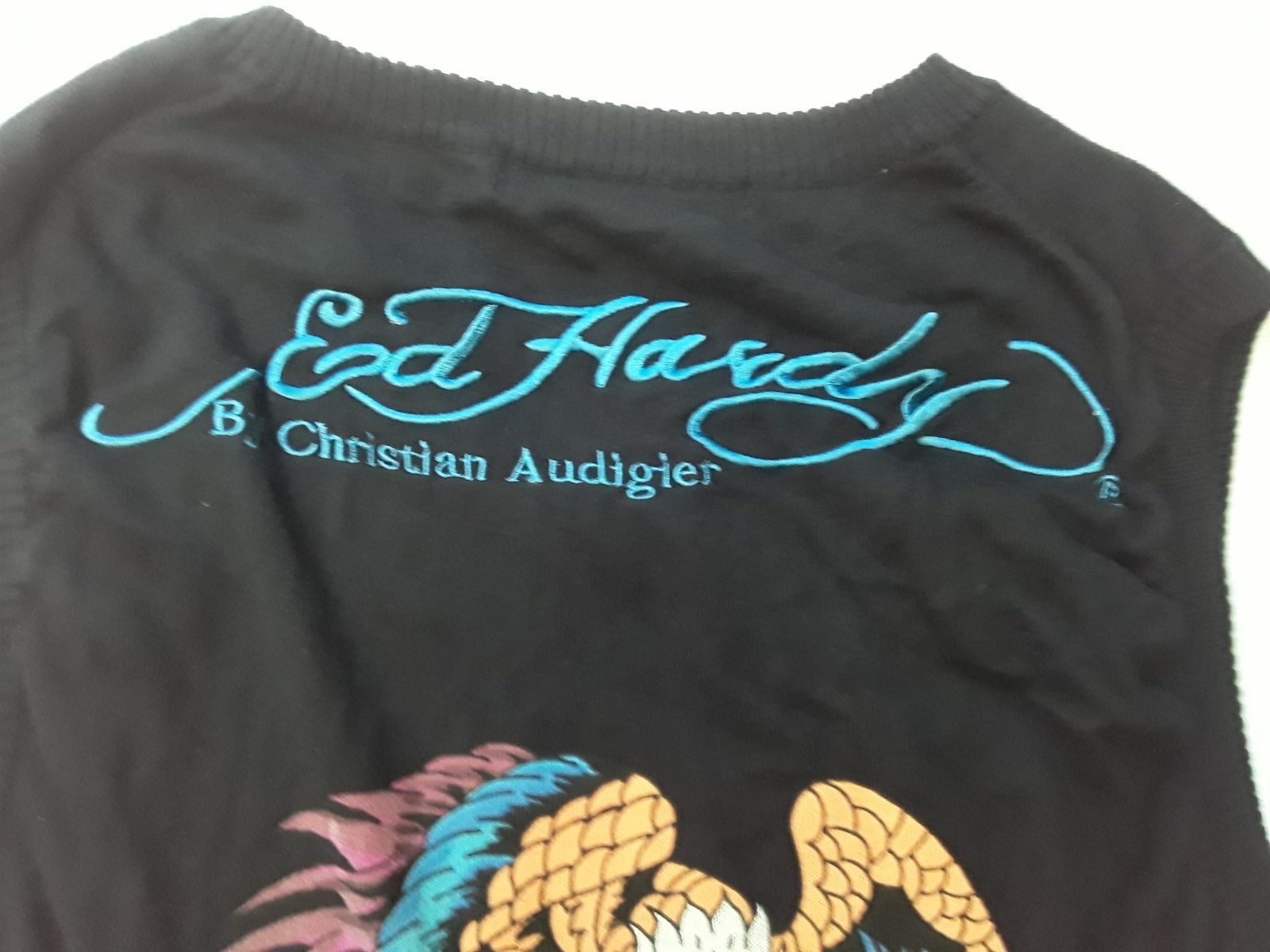 как выглядит Y2K Ed Hardy Christian Audigier Vest Skull Eagle snake Rose Sword XL фото