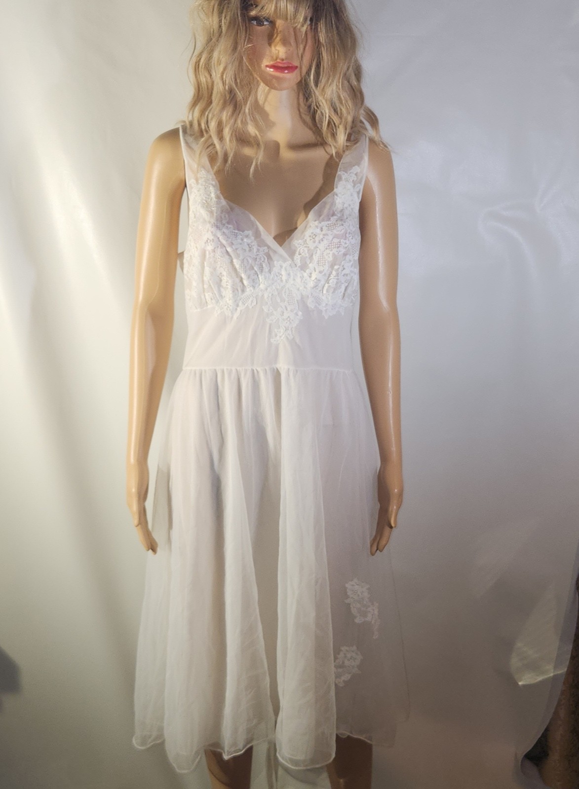 как выглядит Vintage 1960s Van Raalte Ethereal Fairy White "MYTH" Chiffon Peignoir Nightgown фото