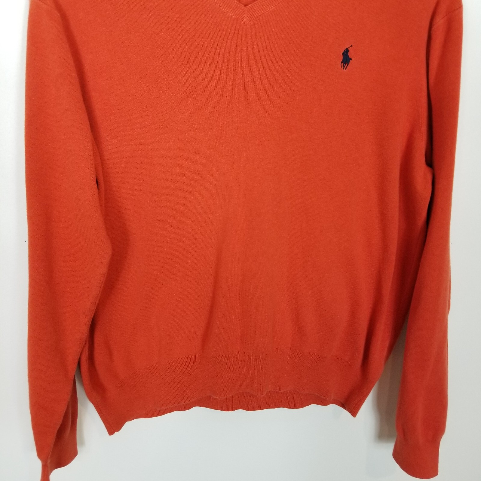 как выглядит Polo Ralph Lauren Mens Pima Cotton Knit Jumper Sz XL Orange V Neck Preppy Logo фото