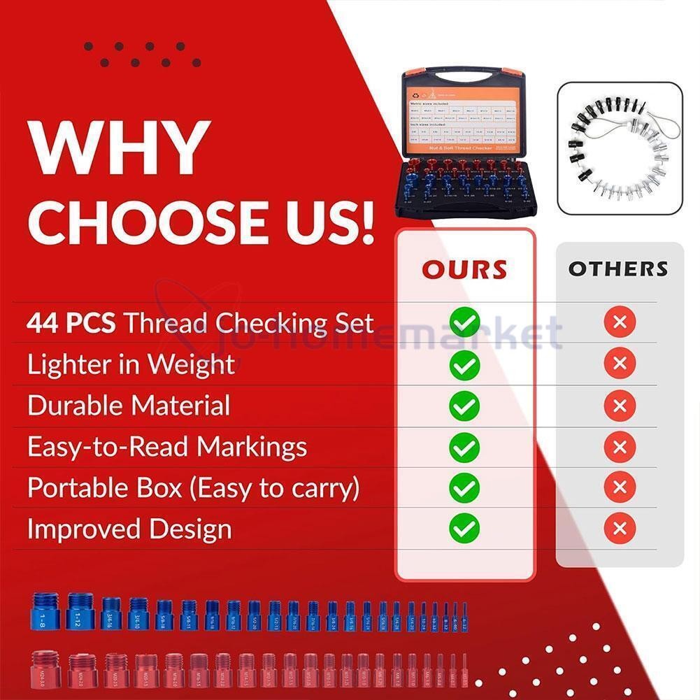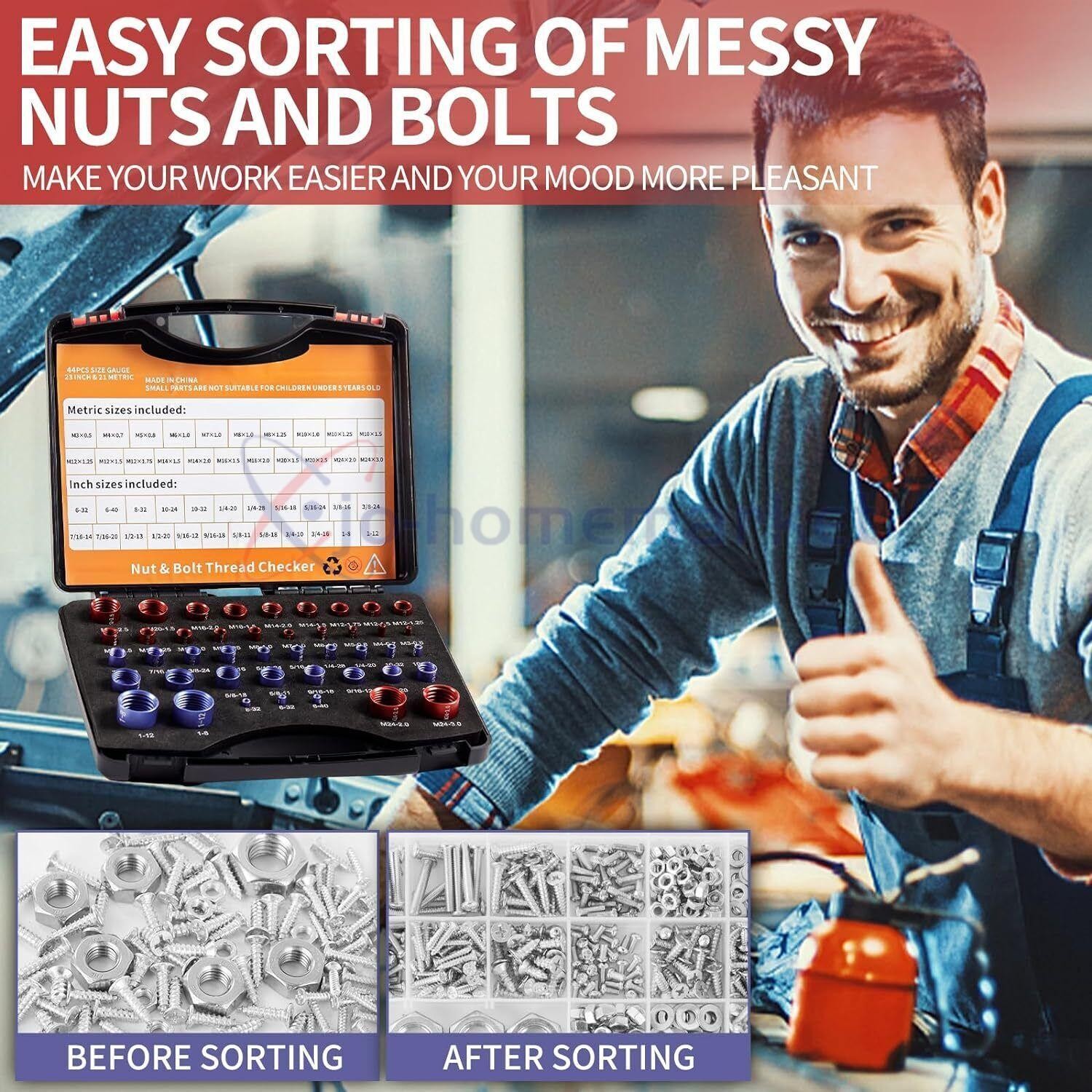 44pcs Inch Metric Set Nut Bolt Thread Checker Identifier Thread Gauges Box