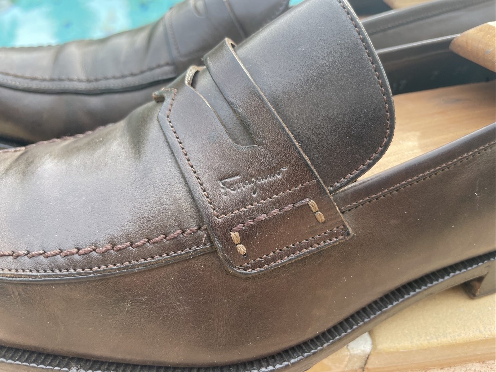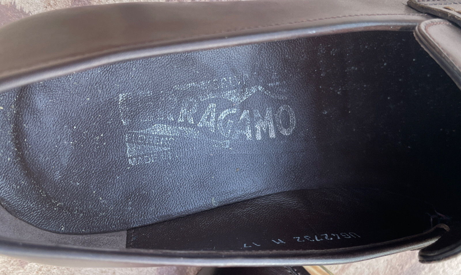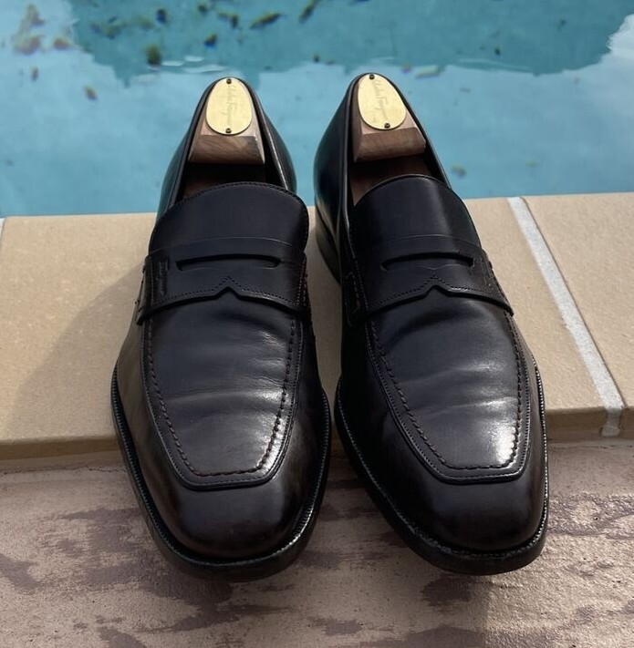 как выглядит SALVATORE FERRAGAMO BROWN LEATHER LOGO PENNY LOAFER SHOES Sz 7 2E MADE IN ITALY фото
