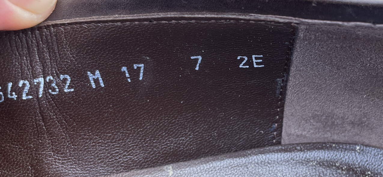 SALVATORE FERRAGAMO BROWN LEATHER LOGO PENNY LOAFER SHOES Sz 7 2E MADE IN ITALY