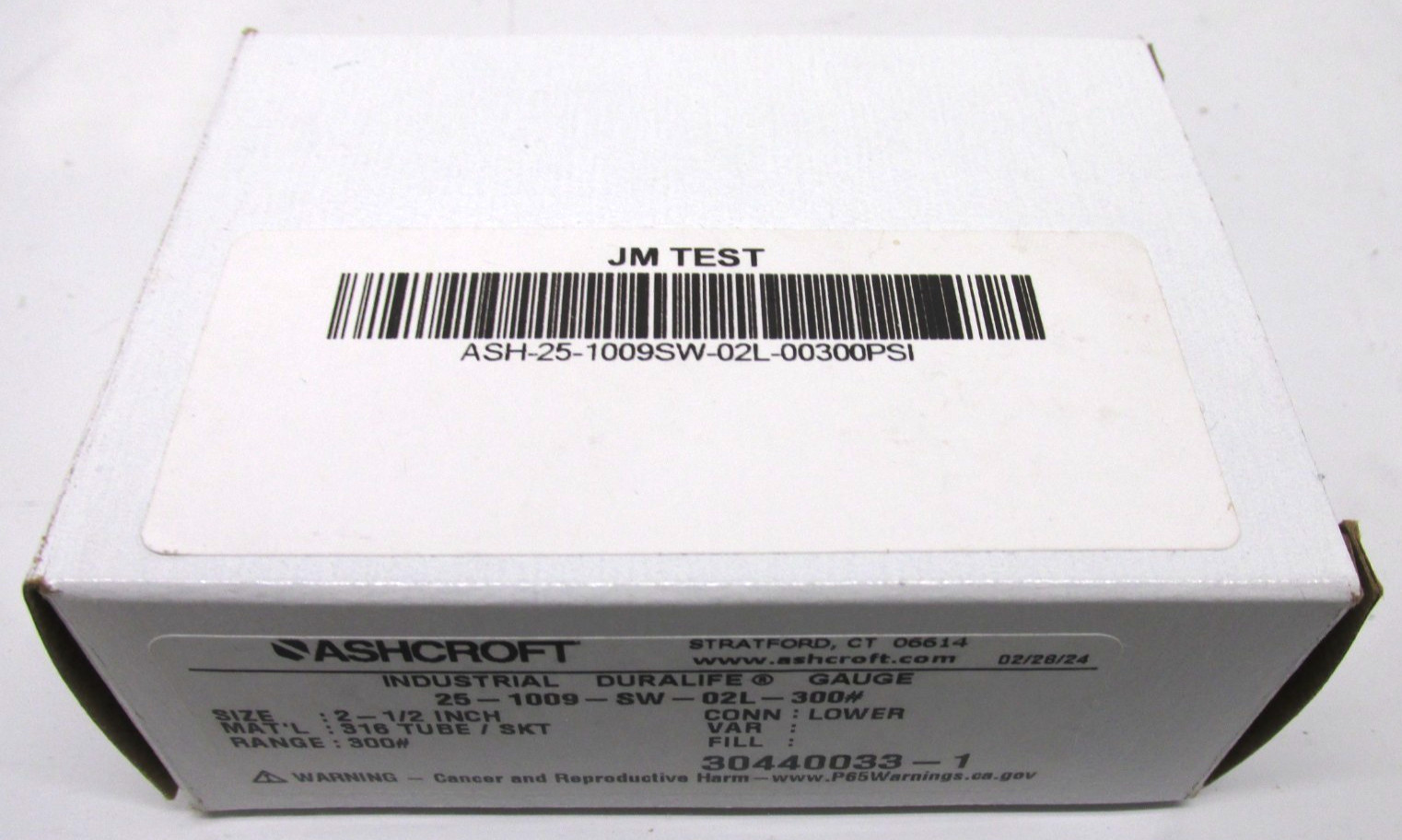 • Ashcroft 25-1009-SW-02L-300 PSI, 1/4"NPT, 2 1/2" Dial Pressure Gauge, INV