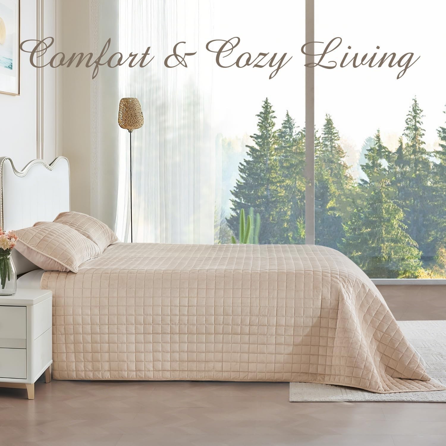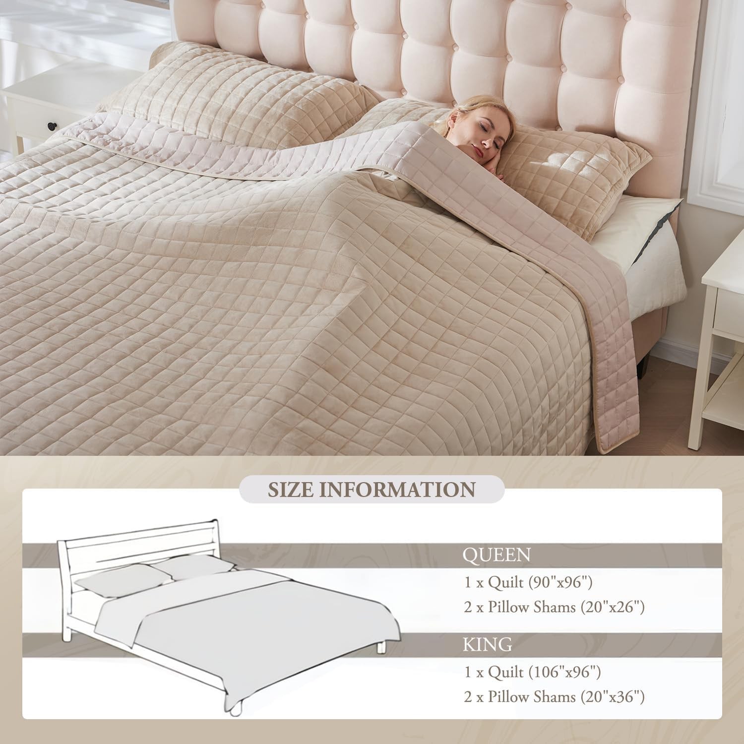 Luxury Velvet Quilt Set Queen Size, Comforter Set with Pillow Shams, Soft