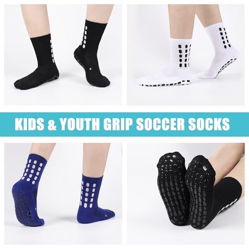 6 Pairs Kids Grip Soccer Socks Cushioned Small 6 Pairs, 2black 2white 2blue