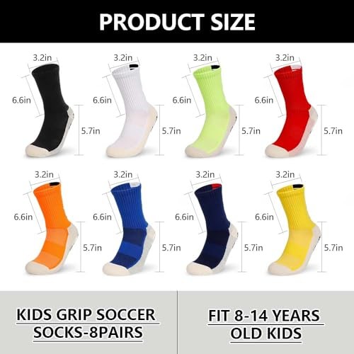 8 Pairs Kids Grip Soccer Socks Non-Slip Grip Pads for One Size Multi-colors