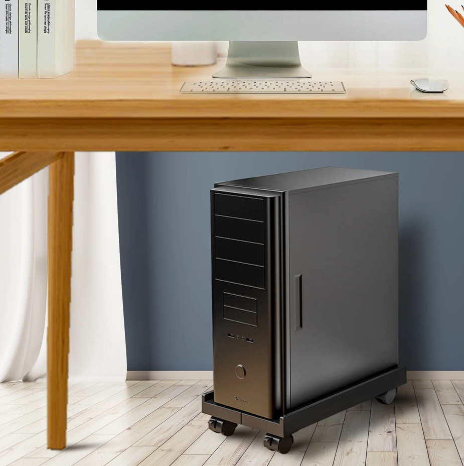 Adjustable Mobile CPU Stand with Wheels Under Desk PC Tower Holder