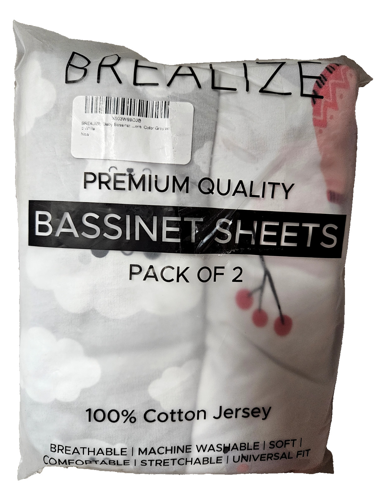 Brealize Bassinet 2 pack Sheets 100 jersey cotton universal fit