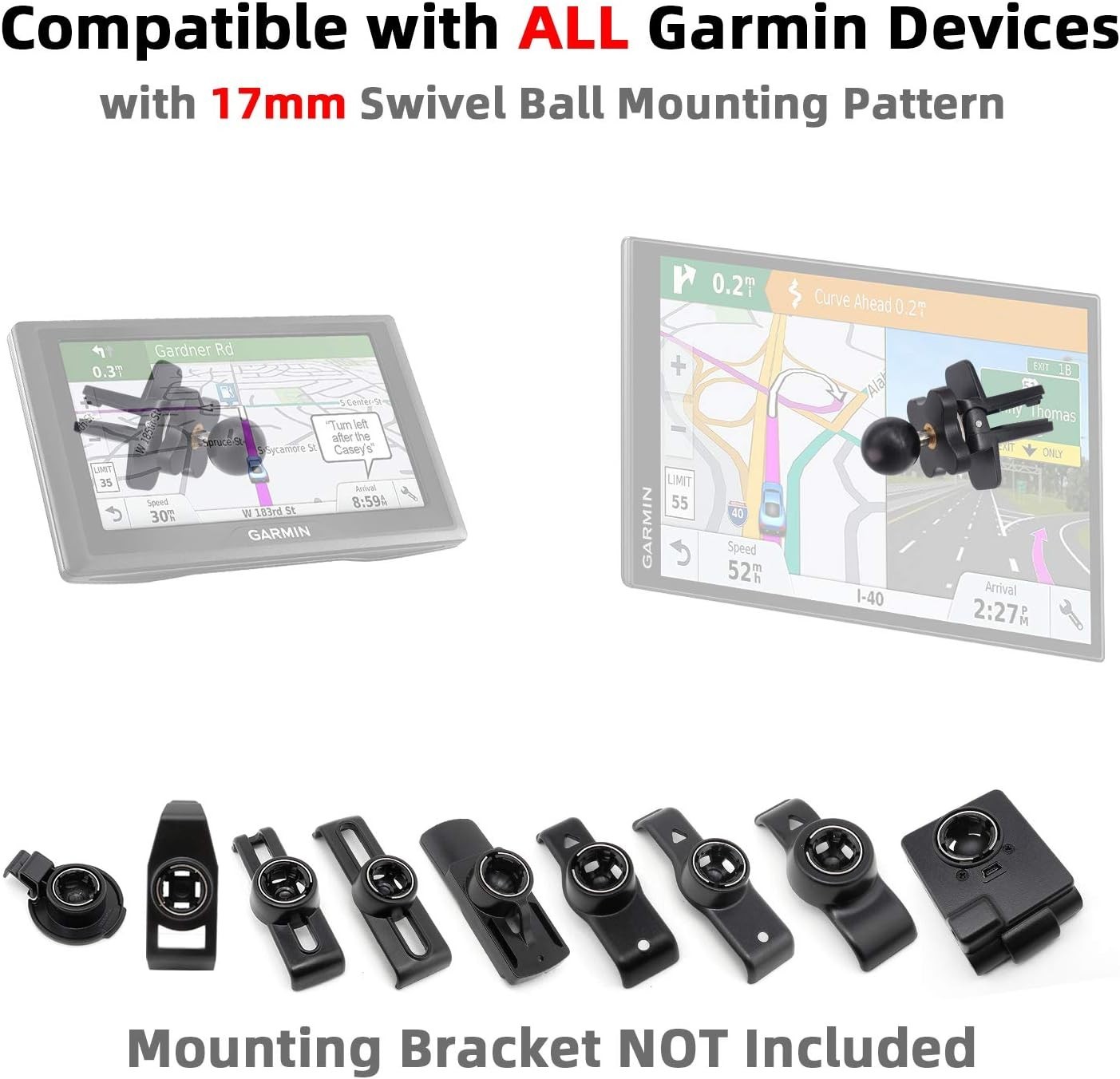 for Garmin Air Vent Mount Holder - 17mm Ball Phone/GPS Vent Mount Base with S...