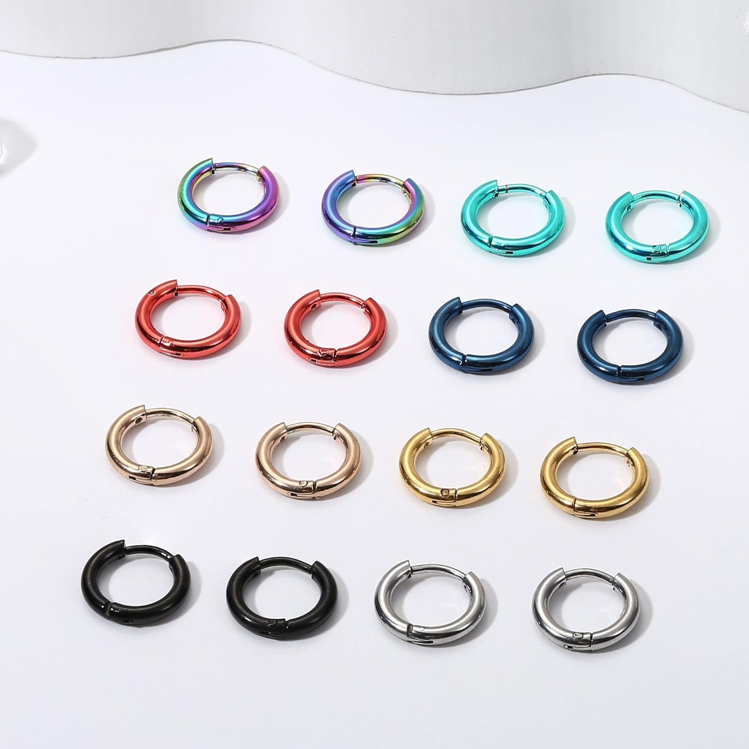 Hypoallergenic Huggie Hoop Earrings Set - 8 Pairs of Various Sizes Colors