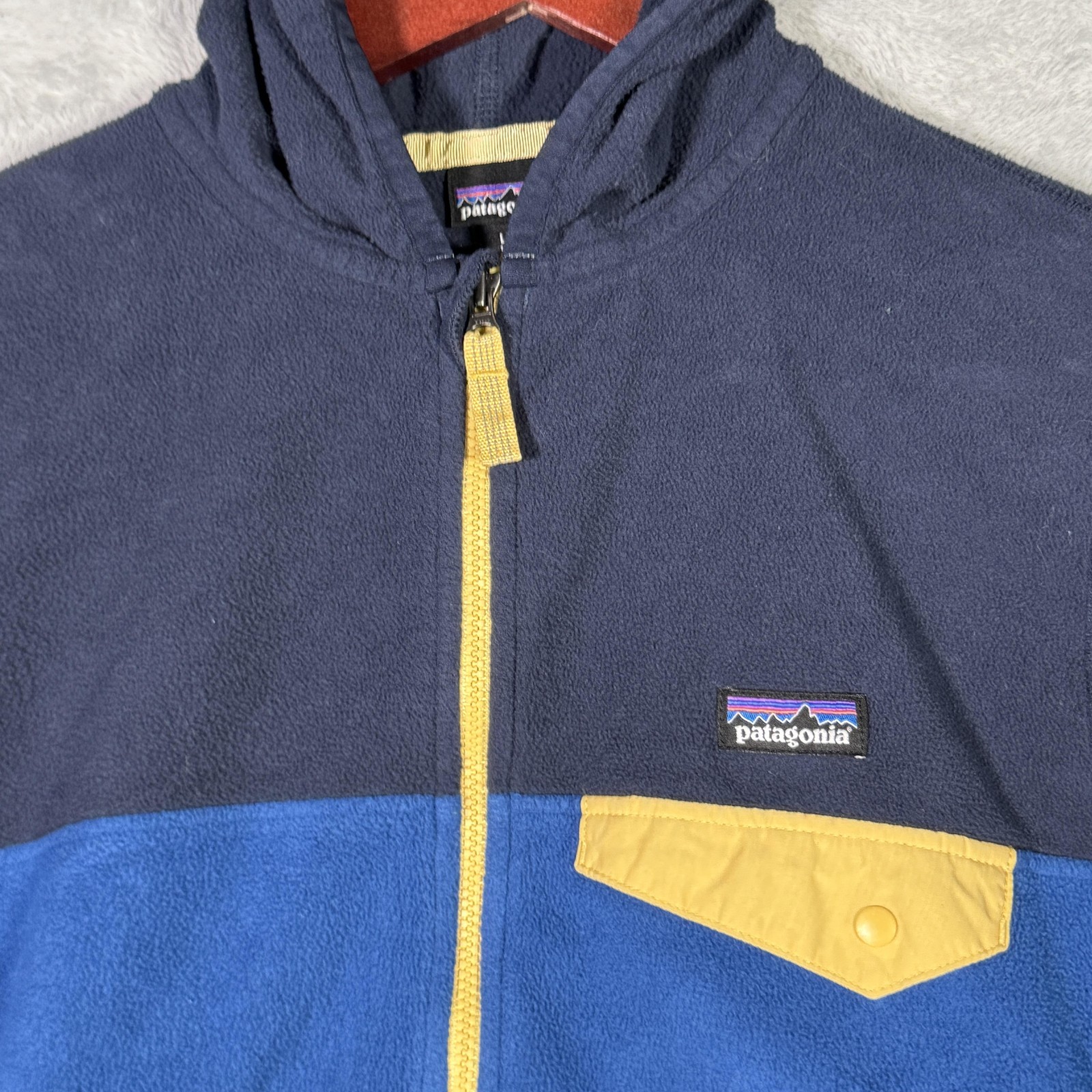 Patagonia Jacket Kids 12 Blue Fleece Hooded Colorblock Full Zip Micro D Snap T