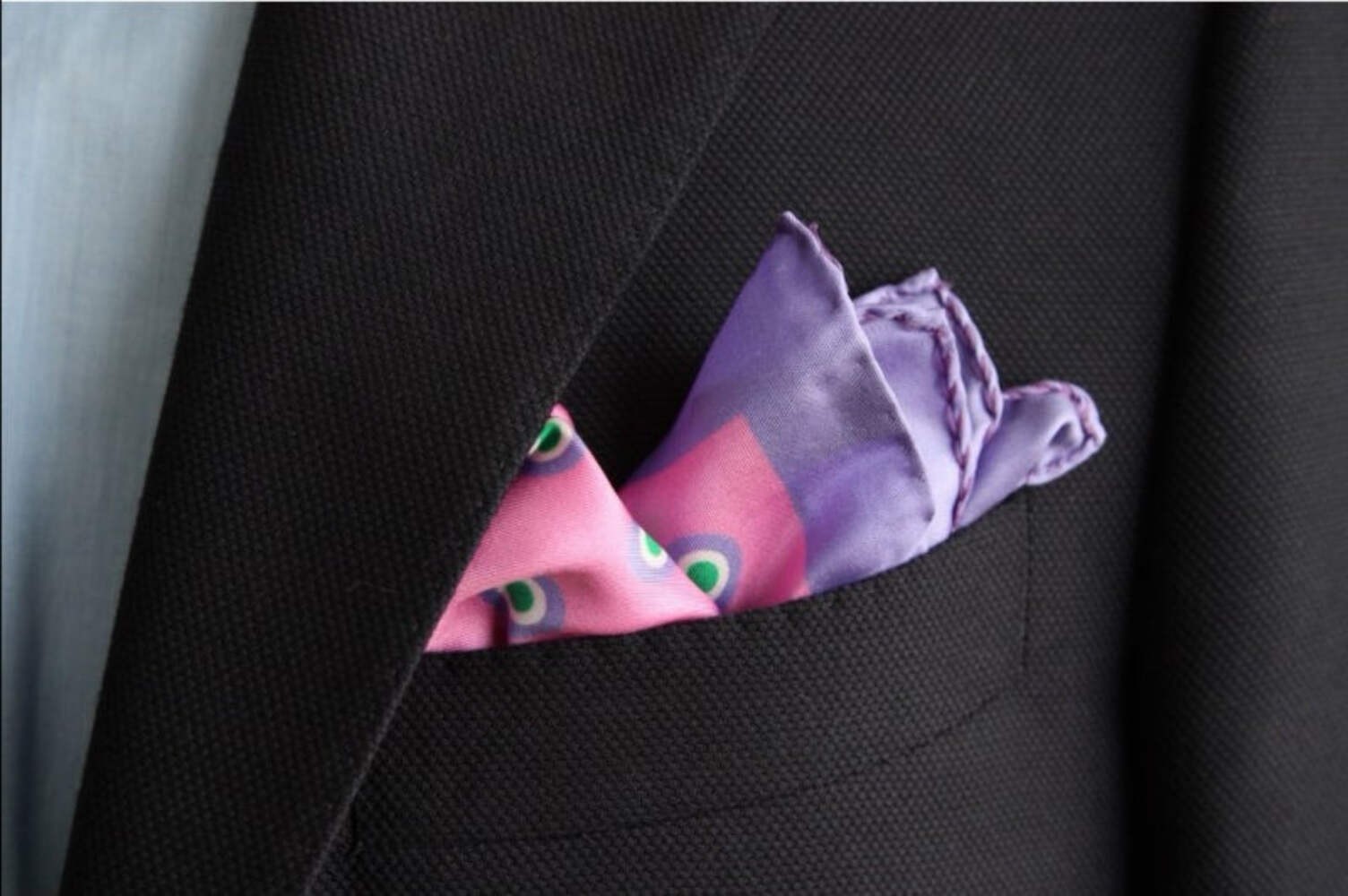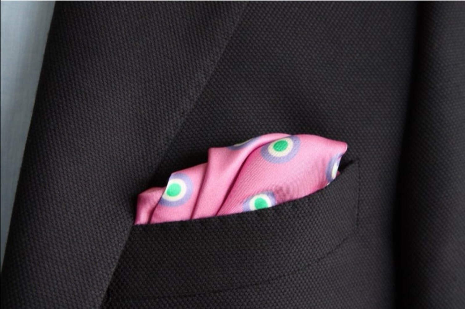 Kiton Pocket Square Pink periwinkle bullseye pattern, pure silk