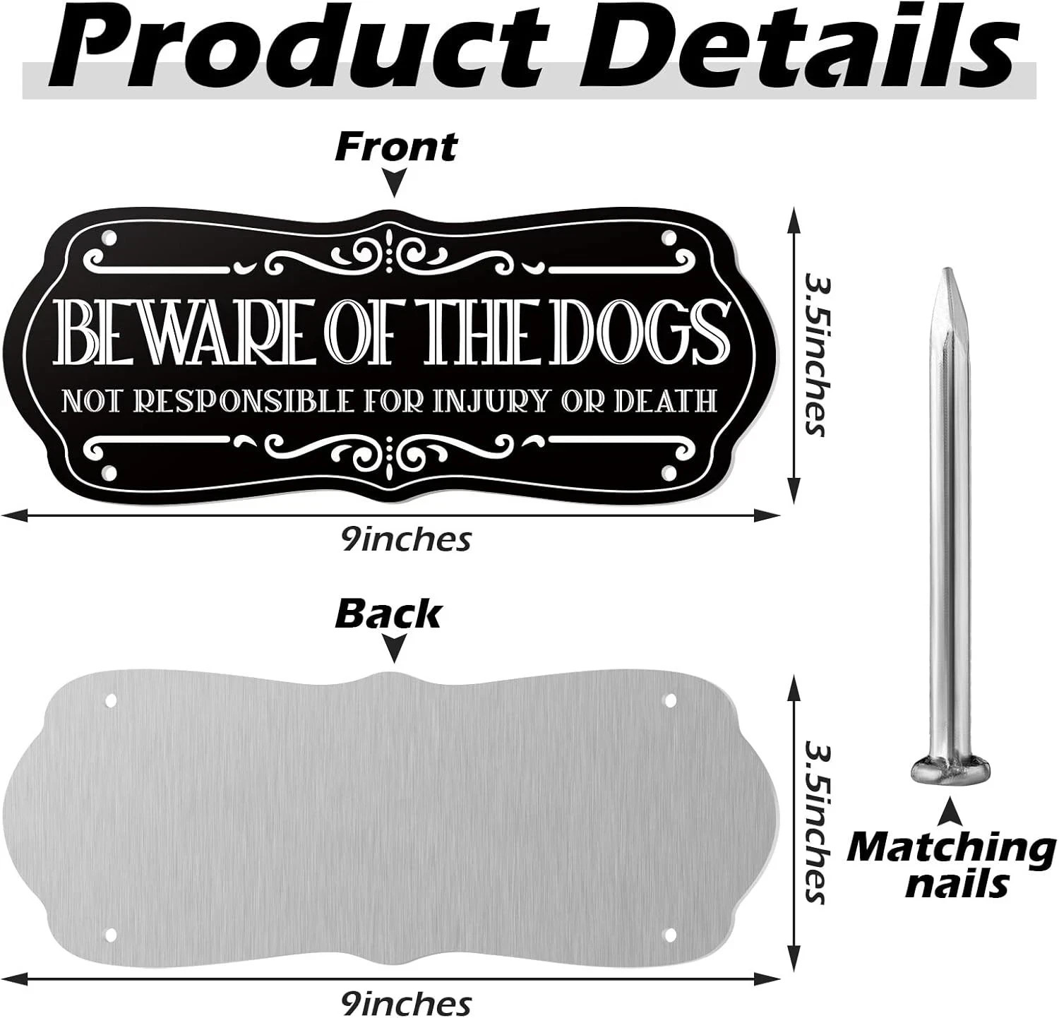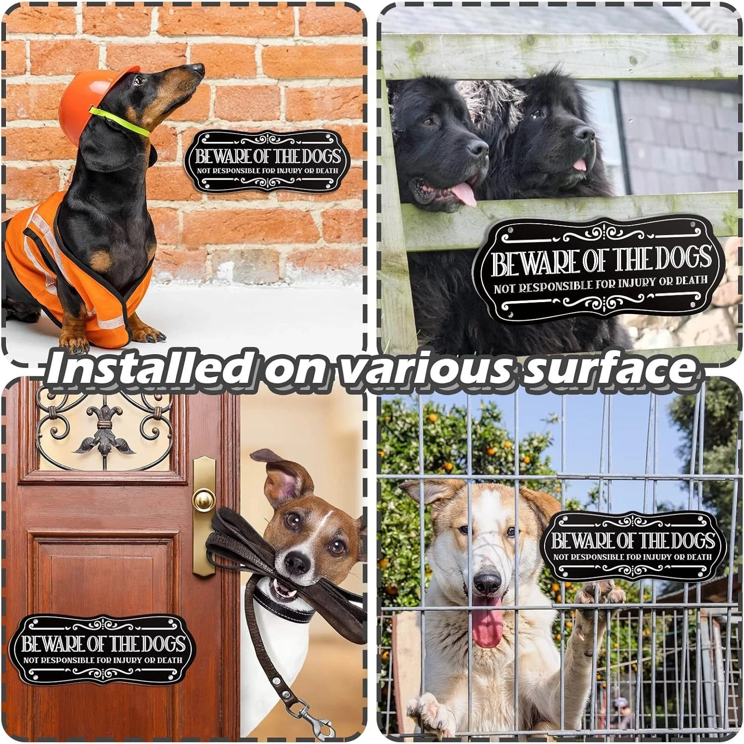 2 Pieces Dog Sign for Fence Beware of Warning Signs Metal Aluminum Black