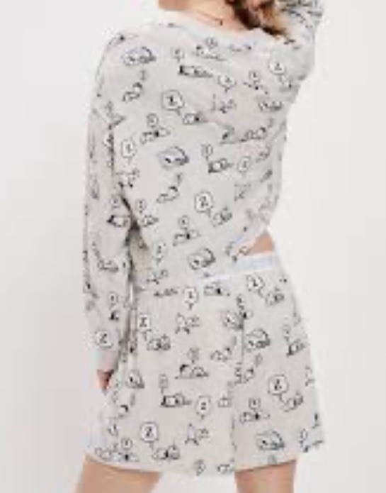 как выглядит American Eagle AE Snoopy Peanuts Plush Sleep Lounge Pajama Set Shorts Top Size L фото