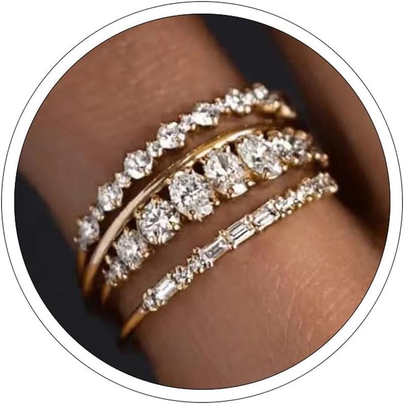как выглядит Stackable Rings for Women Non Tarnish Dainty Stacking Ring Set Wedding Bands for фото