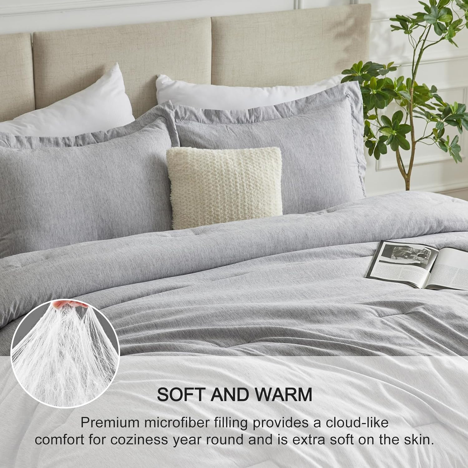 как выглядит California King Comforter Set - 3 Pieces Light Grey Soft Luxury Cationic Dyeing фото