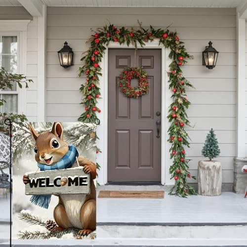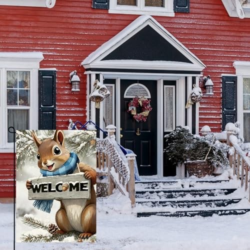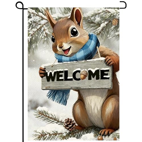 Welcome Squirrel Garden Flag 12x18inch The Nut Squirrel Winter snow Garden