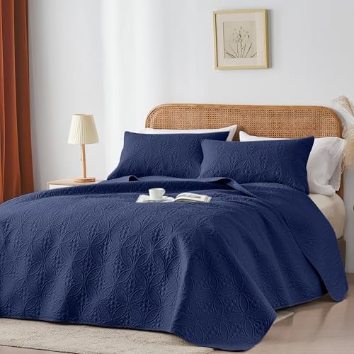 Full/Queen Quilt Set Microfiber Lightweight Full/Queen 90x96 Navy Blue