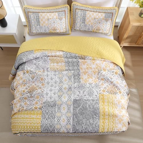 Quilt Set Size,Bohemian Patchwork Bedspread Coverlet Set, King Yellow