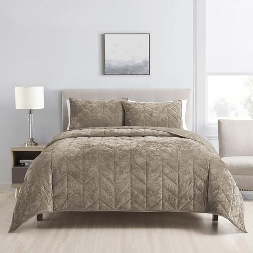 Queen Quilt Bedding Set - Luxury Velvet Summer Quilt Full/Queen- Khaki