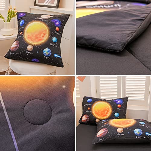 6 Pcs Bed in A Bag Twin Comforter Set for Boys, Solar System Twin-6Pcs Black