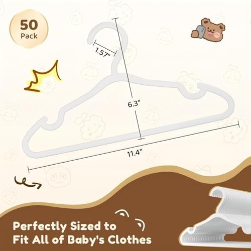 Plastic Kids Hangers - 50 Pack Non-Slip Baby Clothes 11.4-50 Pack White