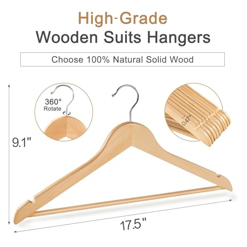 Wooden Hangers 30 Pack Wood Clothes Hangers, Durable Coat 30 PCS Natural