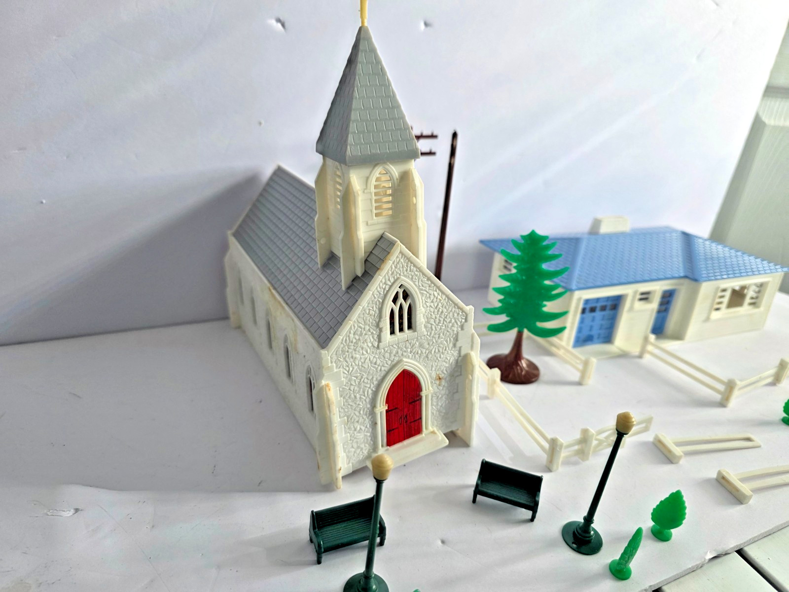 Plasticville CH-8 Church and House Set Complete Model Kit O Guage