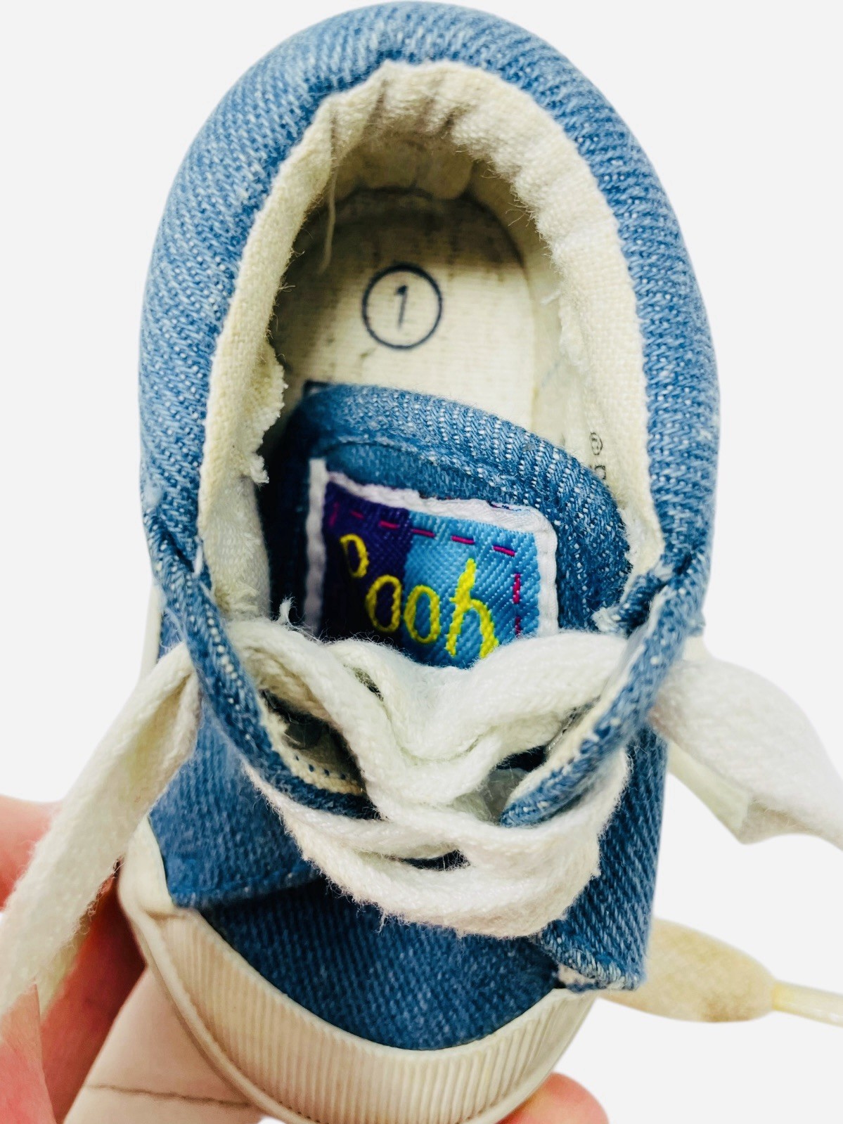 Vintage 90 s Disney Winnie the Pooh Denim Canvas Baby Toddler Shoes Size 1