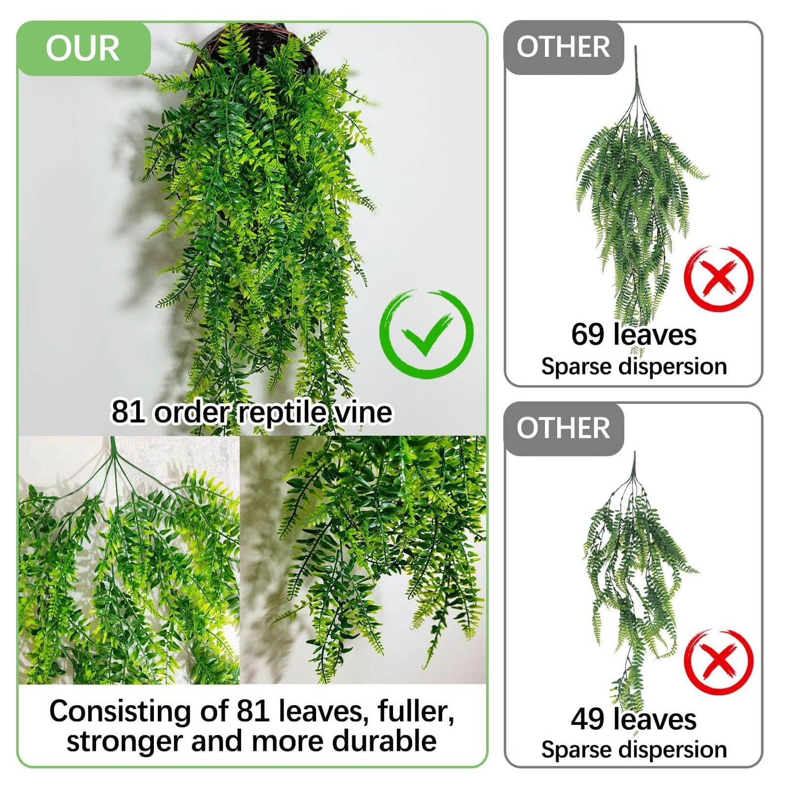 Included Components: 3 Pack Reptile Plants Hanging Fake Vines