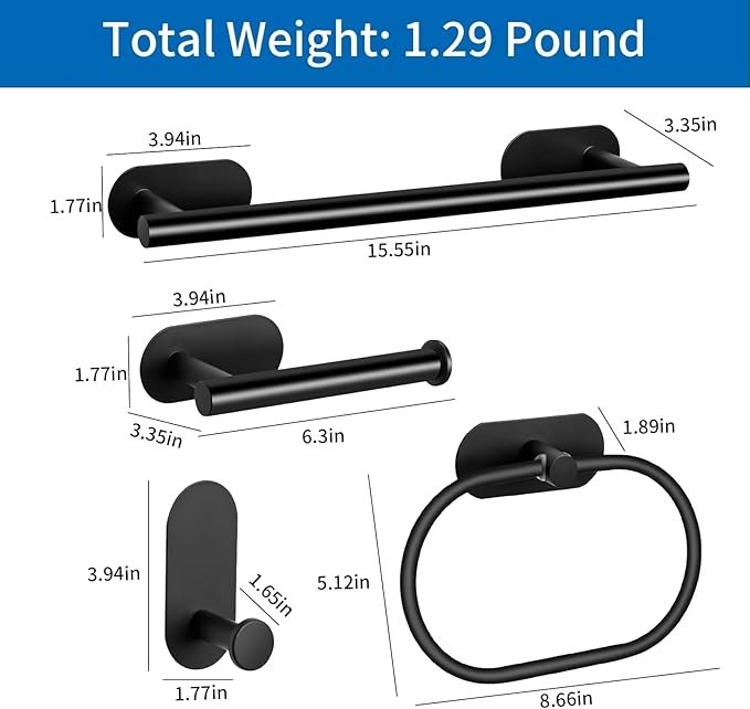 Set Includes: Towel Hook, Towel Rack, Towel Rail, Towel Ring, Towel Shelf, Towel Stand