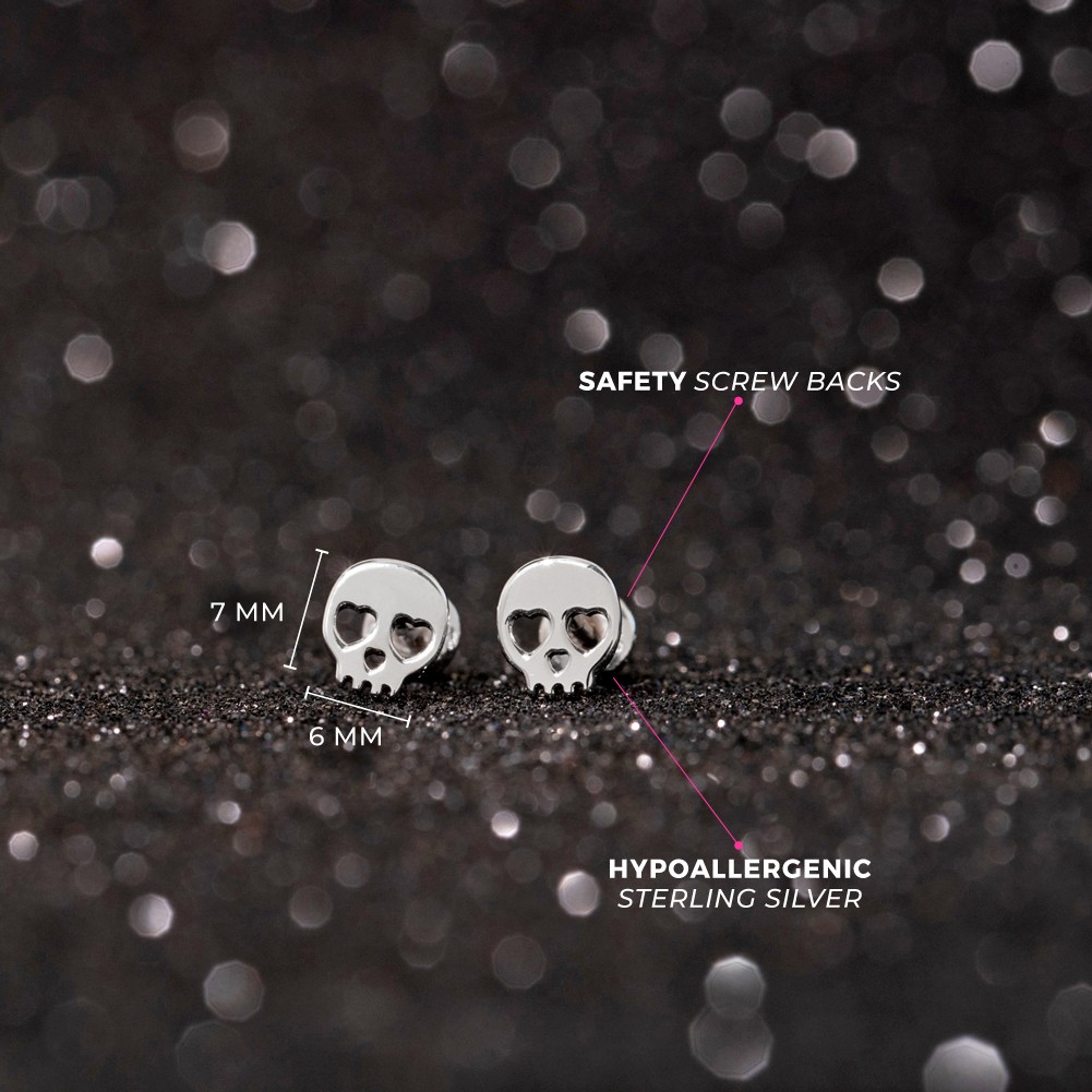 Heart-Eyed Bones Kids / Children's / Girls Earrings Screw Back - Sterling Silver