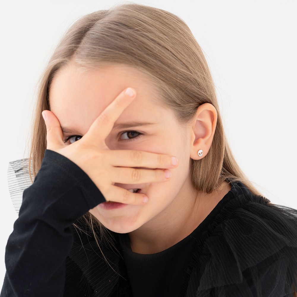 как выглядит Heart-Eyed Bones Kids / Childrens / Girls Earrings Screw Back - Sterling Silver фото