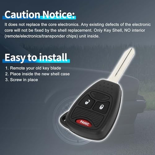 Key Shell Case Keyless Entry Remote Key Fob Replacement Case for Dodge for