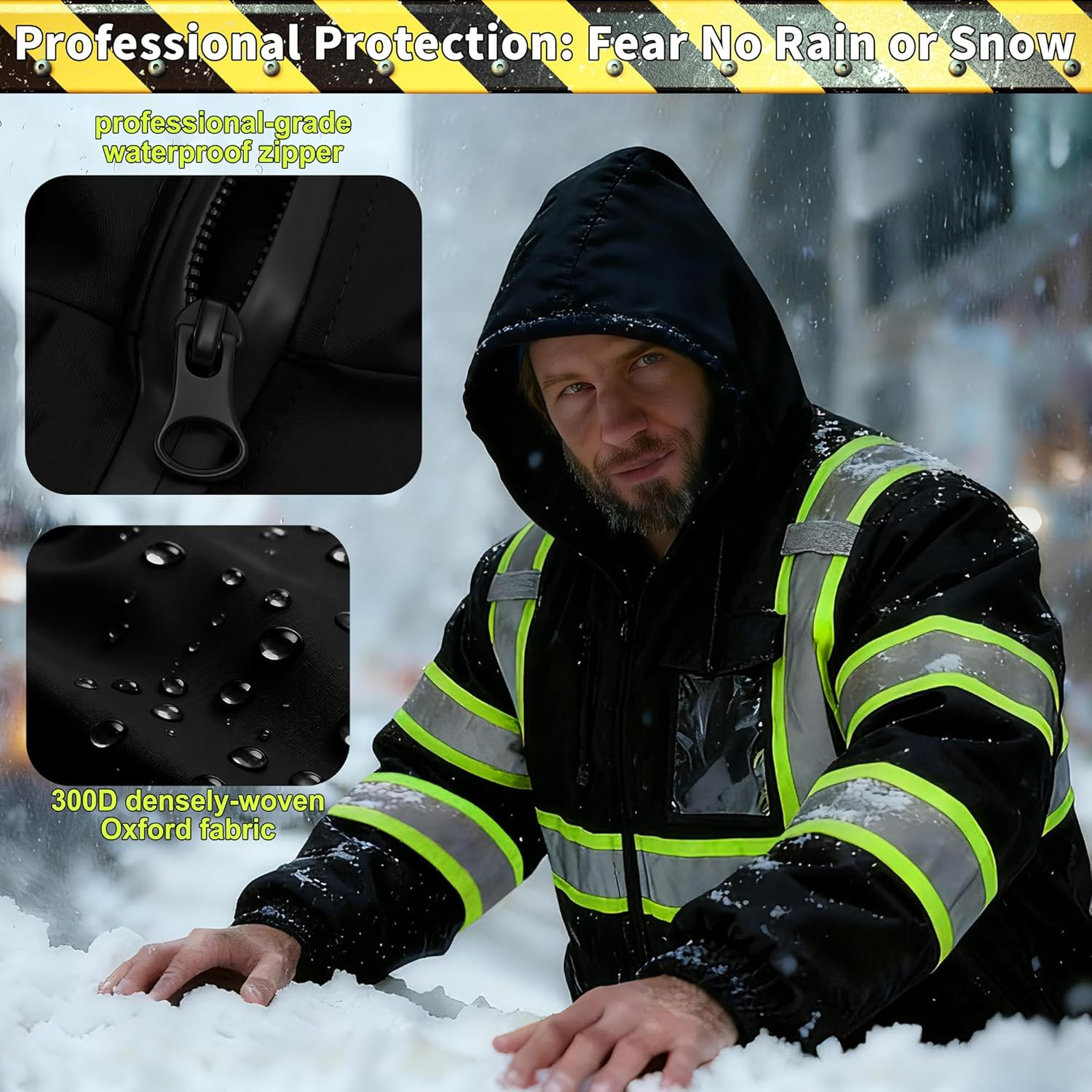 High Visibility Jacket, Class 3 Waterproof Safety Jacket for Men, Hi Vis Winter