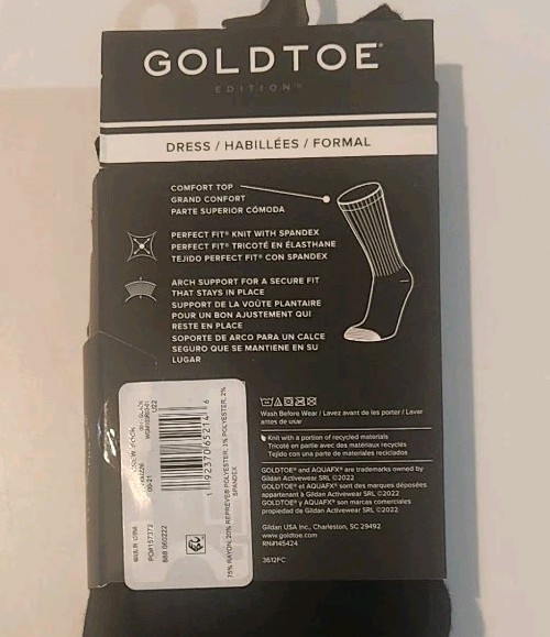 как выглядит Gold Toe Mens Dress Socks Black 6 pairs Shoe Size Range 6-12.5 New With Tags фото