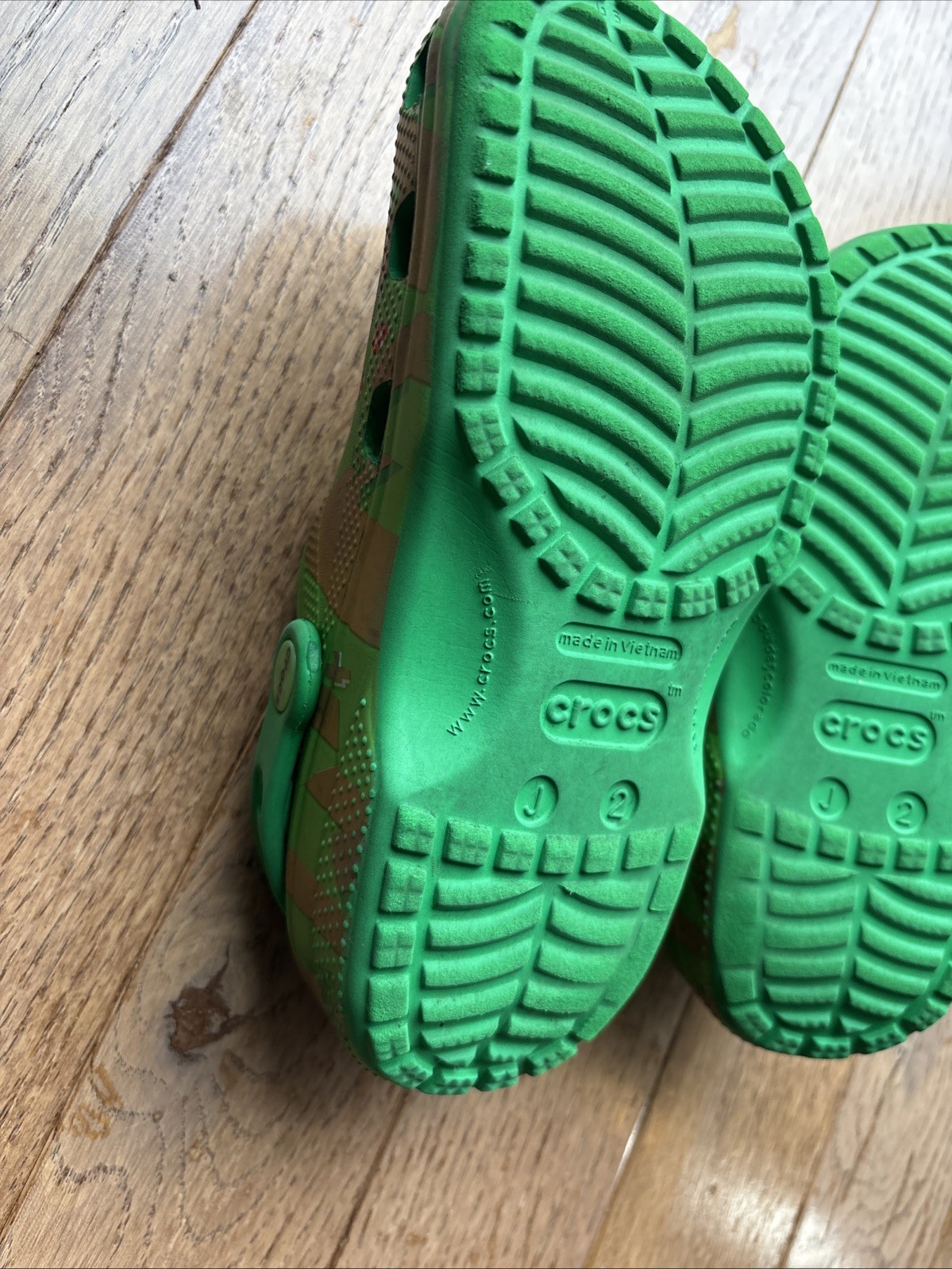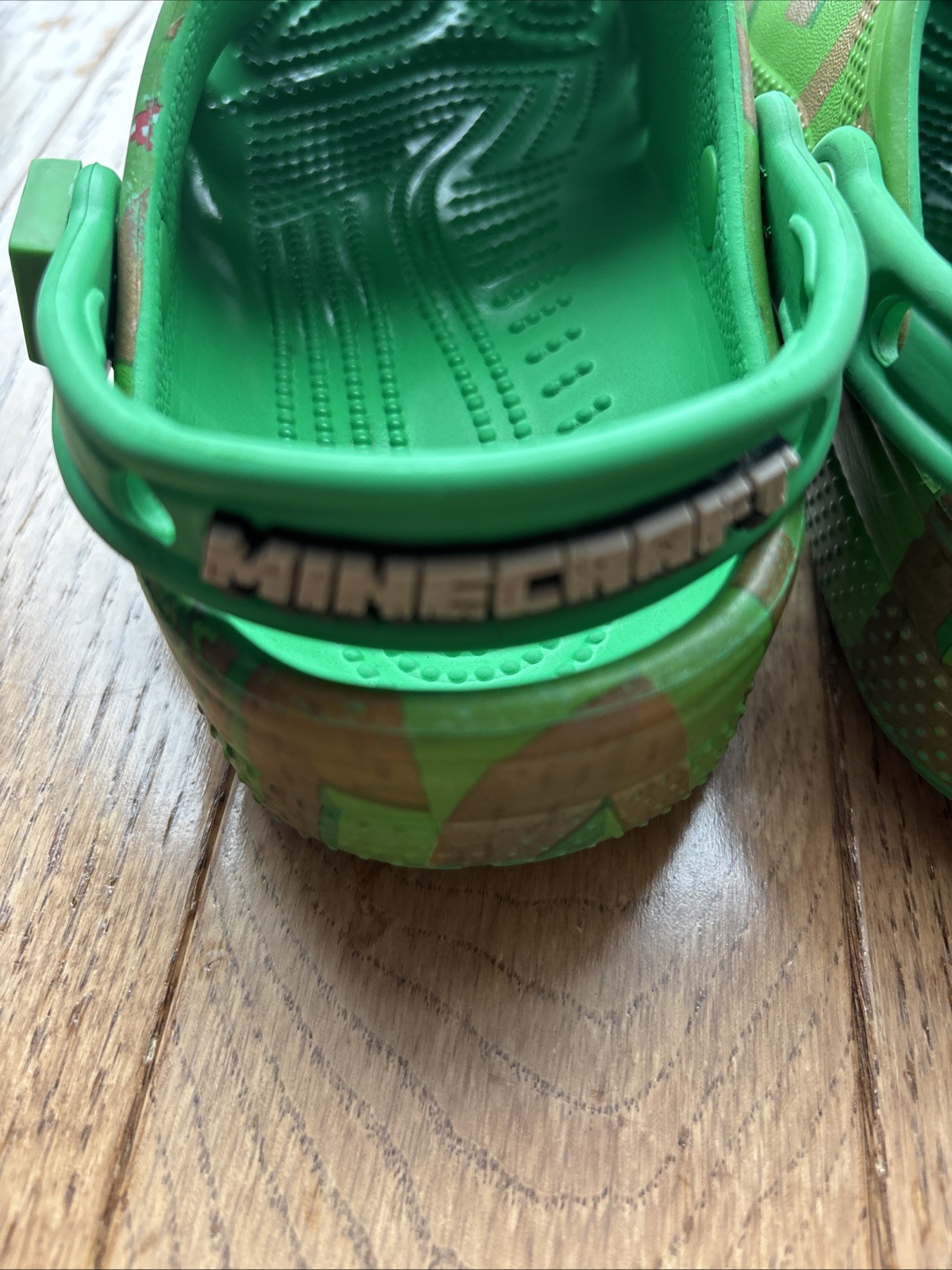 Minecraft Crocs Classic Clog Youth J 2 Green Gamer Shoes with Charms GUC Clean