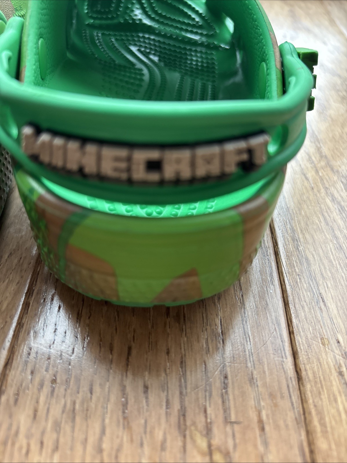 как выглядит Minecraft Crocs Classic Clog Youth J 2 Green Gamer Shoes with Charms GUC Clean фото