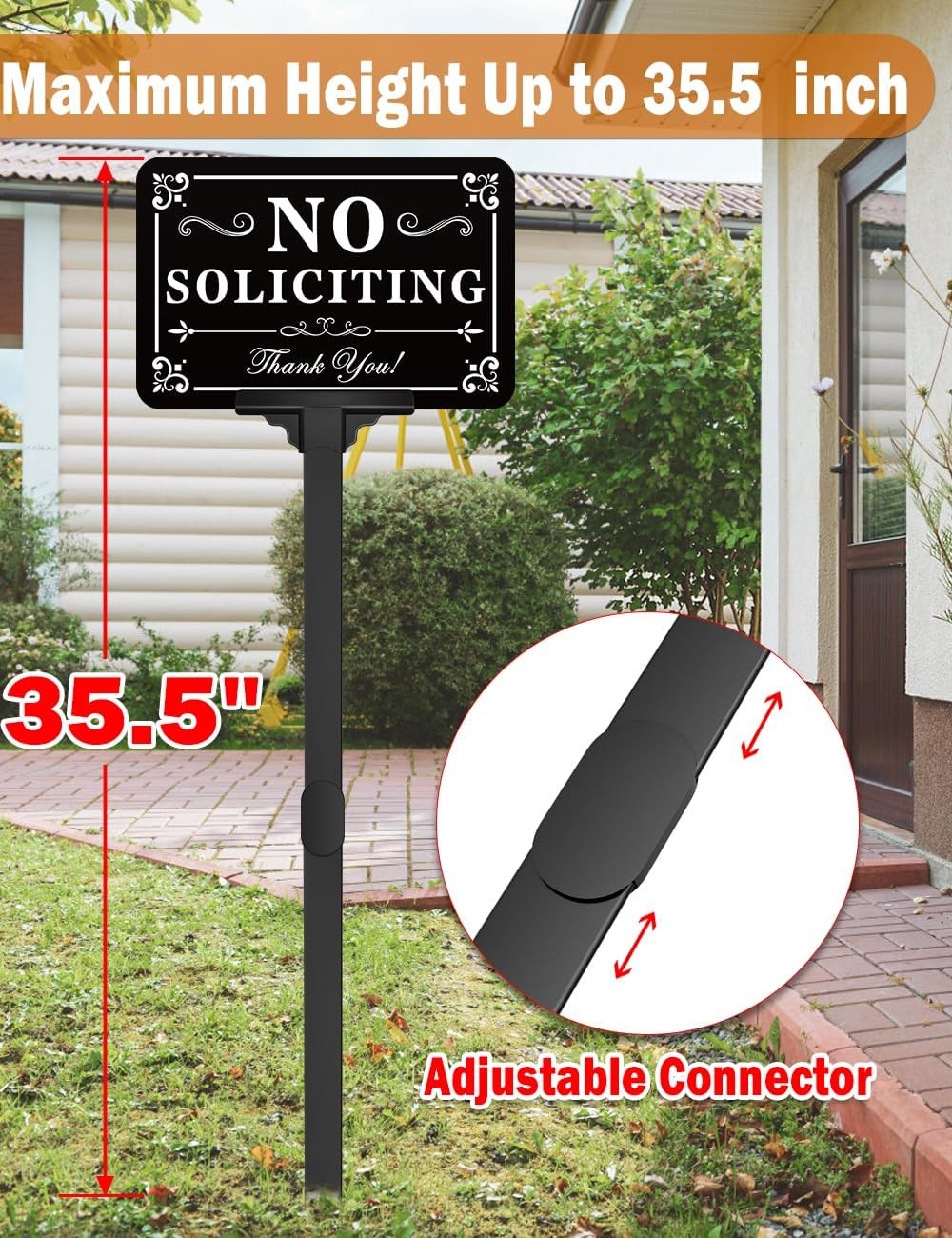 No Soliciting Sign for House with Stake - Adjustable Height - 12 X 8 Inch/37 Inc