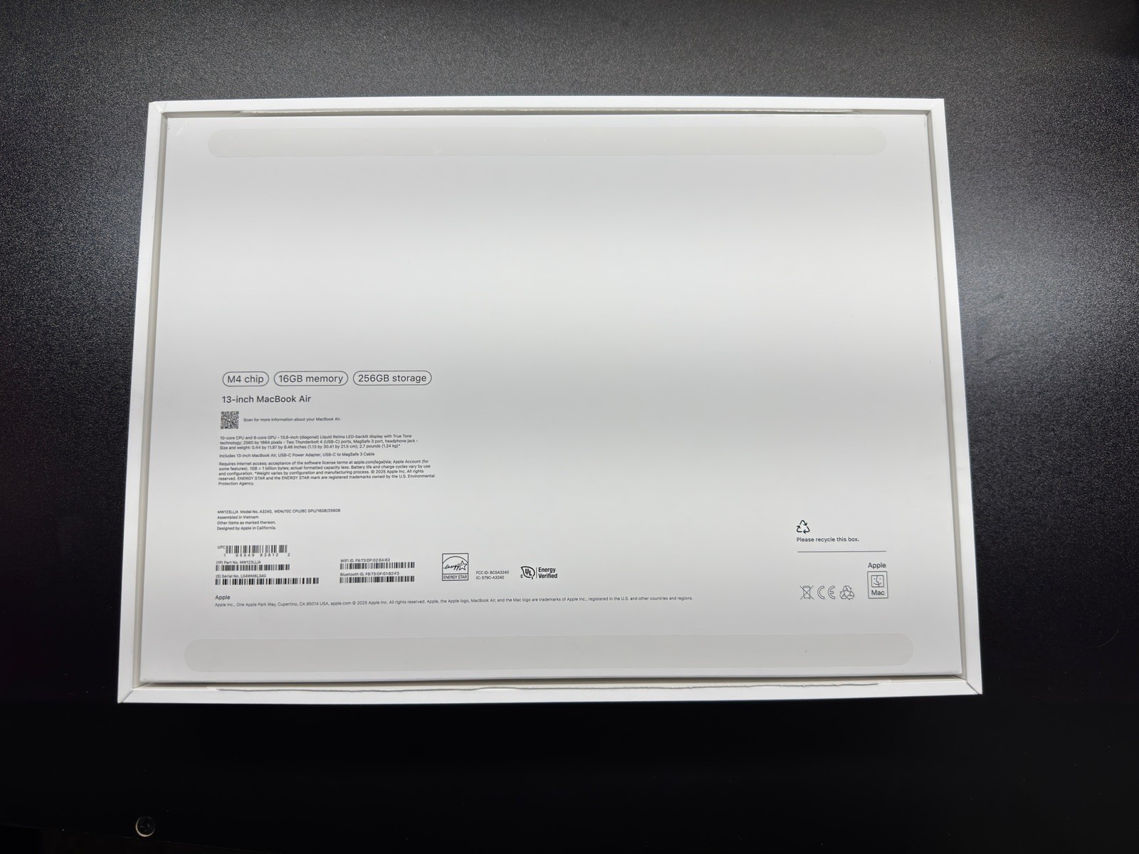как выглядит Apple MacBook Air Model A3240 M4 13 inch 2025 256GB Empty Box ONLY фото
