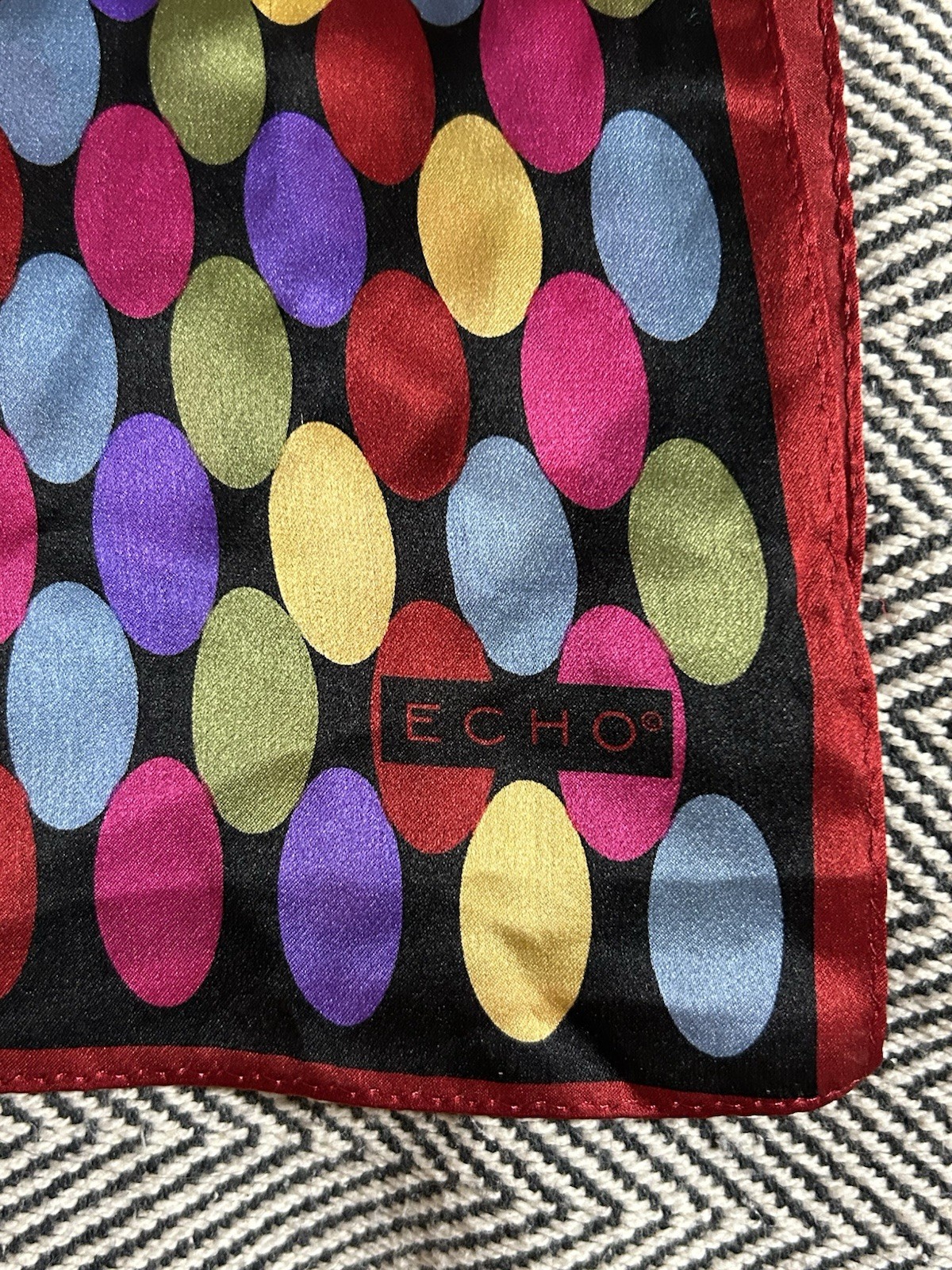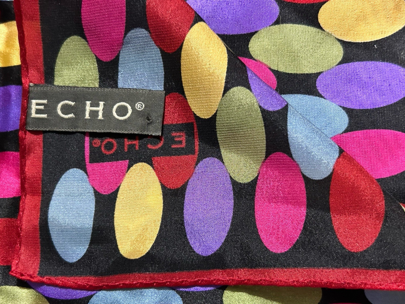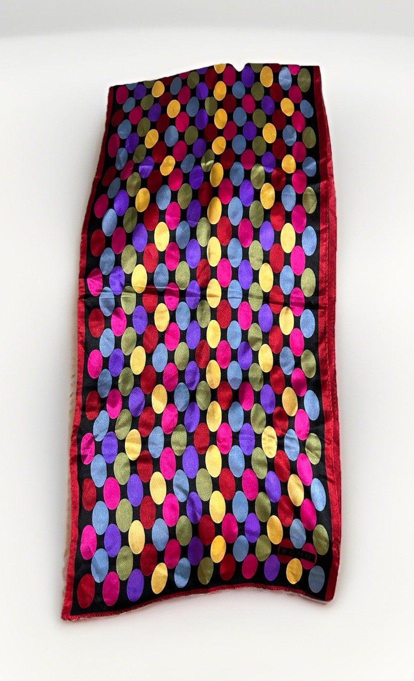 VTG ECHO Red Multicolor Oval Polka Dot 100 Silk Scarf Geometric Retro Pattern