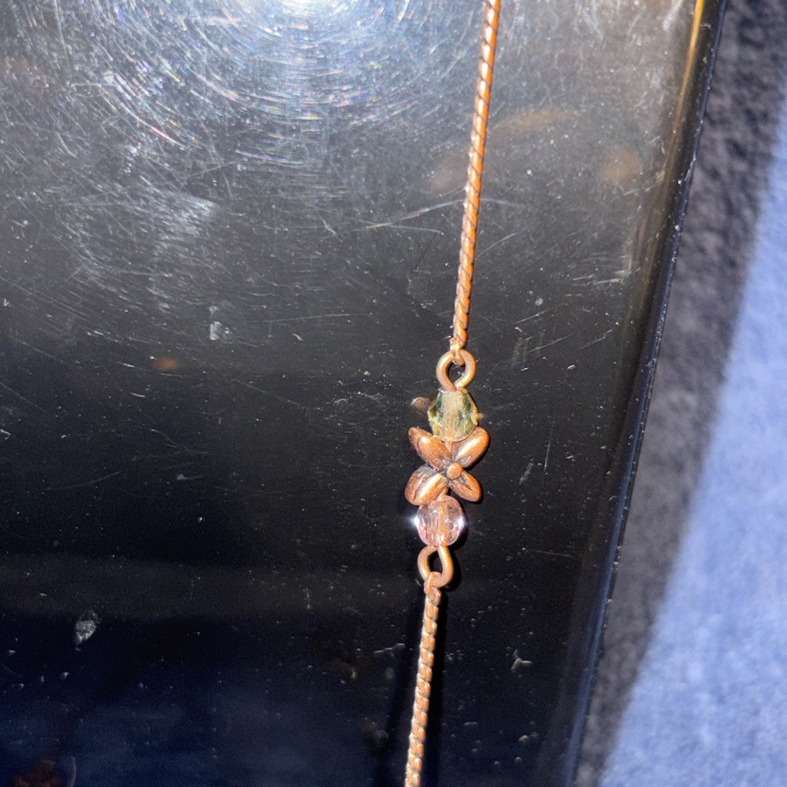 как выглядит Vintage Eye Glass Holder Chain Copper With Butterflies фото